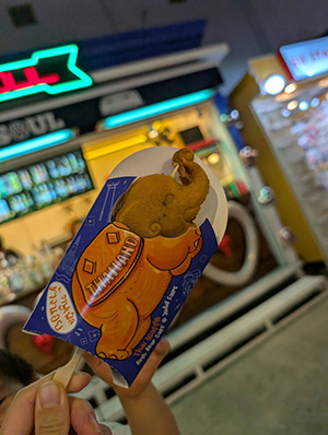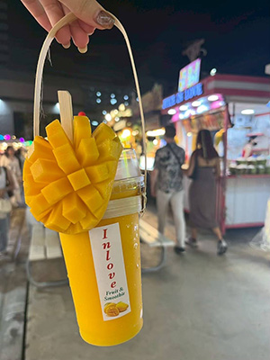 6.ナイトマーケットのマンゴースムージーとワッフル(執筆者撮影)